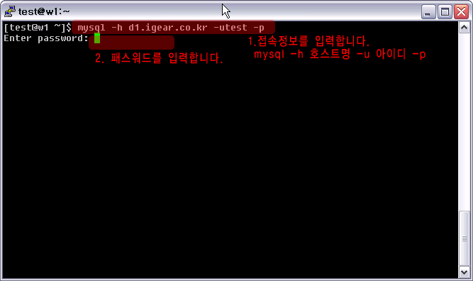 데이타베이스 접속을 위해 콘솔(SSH)에 접속합니다. (SSH 접속메뉴얼 참조)